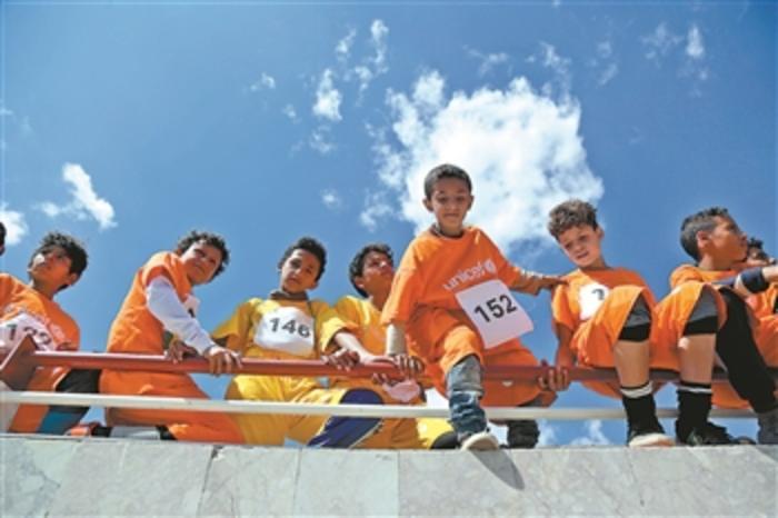 11月20日,在也门萨那,当地儿童参加世界儿童日庆祝活动。当日是世界儿童日。