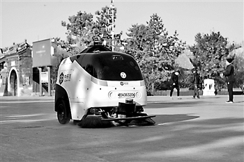 近日,呼和浩特市玉泉区环卫局迎来了一名“特殊员工”——智能清扫机。它负责清扫玉泉区面积达1万多平方米的大召广场,其行进路线由电脑设计,如果行进途中遇到障碍物,它能自动绕开。 新华社记者 刘磊 摄