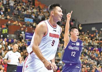 回防的易建联做了一个“第一”的手势。场下的广东队总经理朱芳雨——易建联曾经的队友笑得特别灿烂。因为易建联凭借这个补篮成功超越朱芳雨,成为CBA历史得分王。