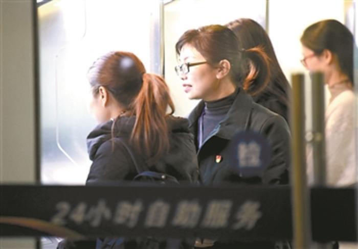 11月27日,引导员(左二)帮助市民在诸暨市政服务大厅24小时自助服务机上办理业务。