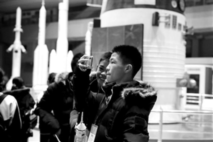 11月23日,农民工子女参观航空航天展。11月26日,广东省江门杜阮镇信志学校的20名农民工子女圆满完成在北京的航空航天工业研学活动。此次活动为期3天,由工信部工业文化发展中心指导,工信光耀(北京)文化发展有限公司和广东省江门杜阮镇信志学校共同主办。 潘旭临 摄/中新社