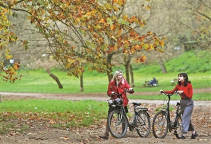 11月26日,在意大利罗马,人们游览博尔盖塞公园。入秋至今,罗马持续多雨。在为数不多的好天气里,人们纷纷走进公园享受秋日。 新华社记者 程婷婷 摄