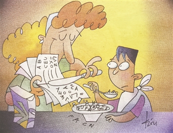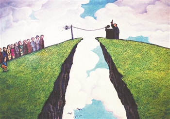 “断层”画的是某单位领导人与员工产生了隔阂。一方唯我独尊指手画脚,另一方则是心有怨气我行我素。各行其是焉能工作?【德国】乔 格