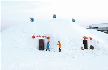 11月30日,黑龙江漠河北极村内的冰雪旅馆吸引游客。