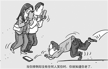 当你摔倒却没有任何人笑你时,你就知道你老了。赵春青 画