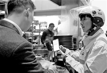 12月3日是国际残疾人日,成都的外卖配送员杜杰是一位聋哑人,他正在通过手机与商家沟通。