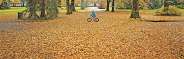 这是在瑞士苏黎世拍摄的黄叶满地的公园。