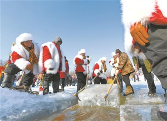 作为我国最北省会城市,在哈尔滨,一年一度的采冰是件“大事”。每年这个时候,大批冰块从松花江送往全市重要景点和大街小巷,仅哈尔滨冰雪大世界、冰灯发源地兆麟公园等处用冰量就达到数十万立方米,这些冰全部出自采冰人之手。