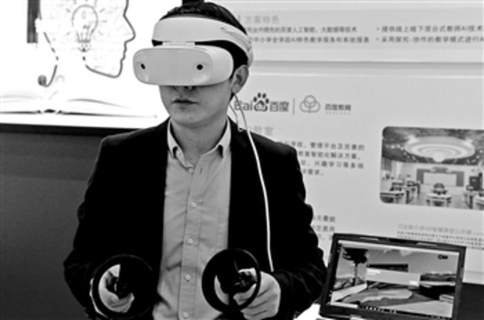 12月9日,参观者在“中国声谷”体验中心体验一款VR设备。