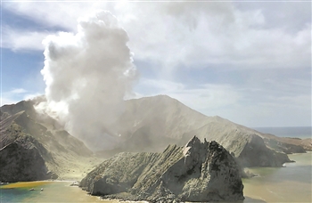 上图为12月9日拍摄的火山喷发后的新西兰怀特岛。