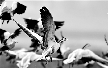 12月11日在贵州草海保护区拍摄的越冬的斑头雁和赤麻鸭。