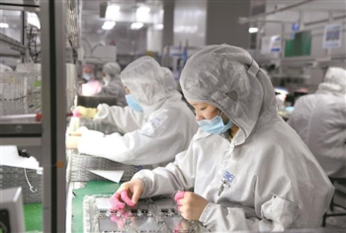 12月13日,工作人员在位于重庆市渝北区的中光电显示技术有限公司触摸屏生产车间内作业。