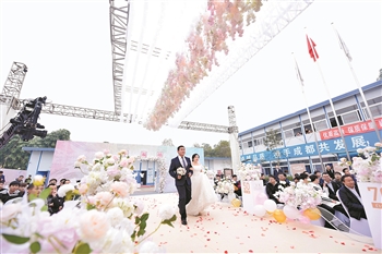 12月15日,中建集团在位于成都市的一处建设工地举行集体婚礼,6对新人喜结连理。