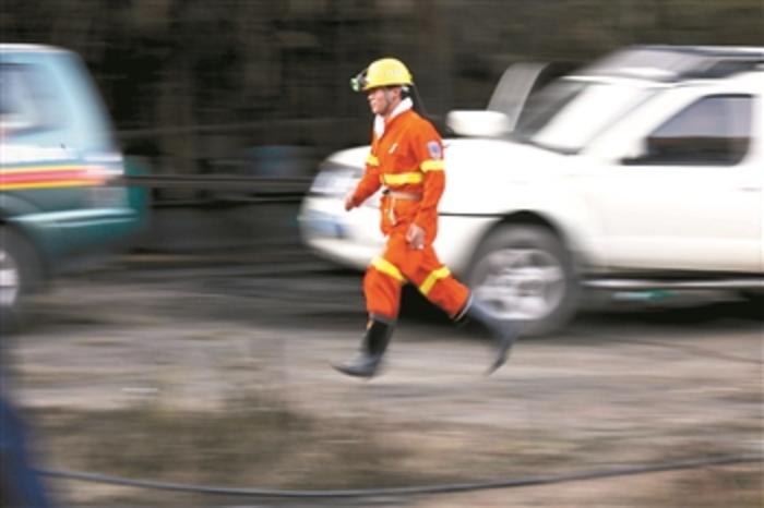 图为救援人员在事故煤矿井口。新华社记者 欧东衢 摄