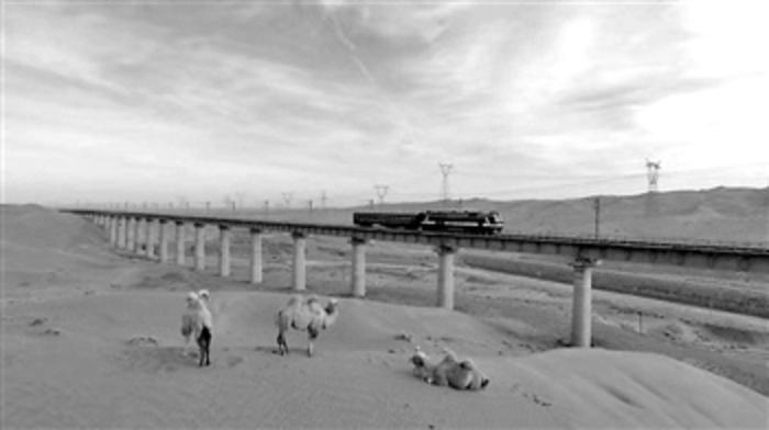 敦煌铁路开通运营后,甘肃阿克塞哈萨克族自治县和肃北蒙古族自治县结束了不通火车的历史,一条充满希望的“钢铁丝路”展现在大漠腹地、戈壁荒原,古老的丝绸之路将迎来快速发展的新时代,焕发出勃勃生机。(强科)