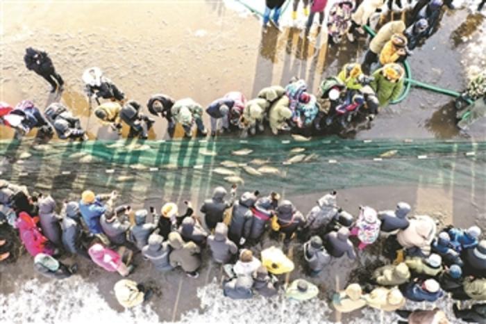 当日,位于内蒙古呼伦贝尔大草原上的诺干湖举行冬捕活动,吸引不少游客前来观看。冬日的诺干湖冰雪覆盖,诺干湖冬捕也是当地冬季旅游的特色活动之一。