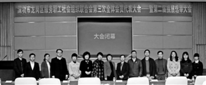 深圳龙岗区服务职工社会组织联合会第二届换届选举大会。