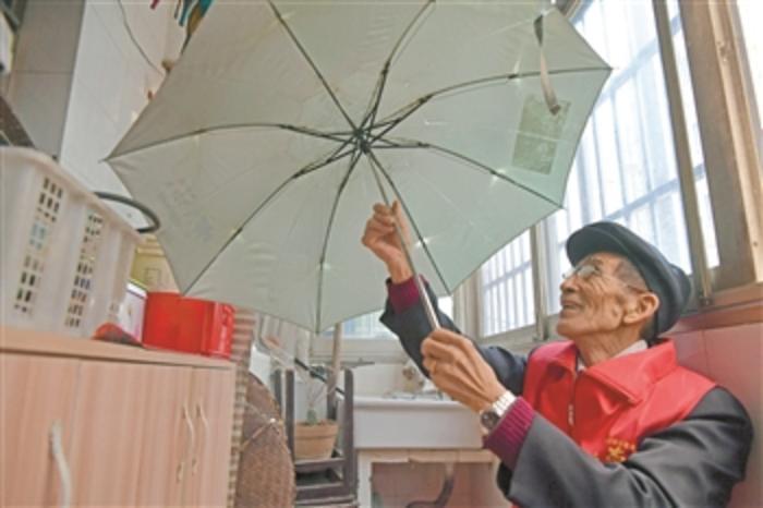 为了保证不缺伞,况亮四处搜集丢弃的破伞和零部件,经过清洗、修理、组装后再送到“爱心伞”柜。自2014年来,况亮为“爱心伞”柜供应了上千把各式雨伞,凡是有需要的人,都可以免费取伞使用。