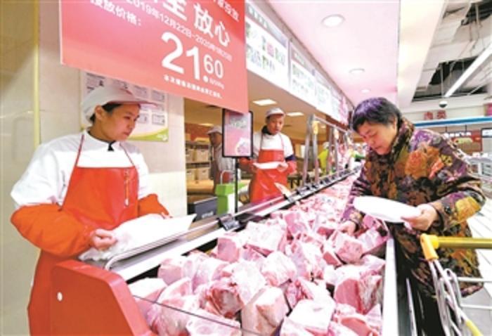 为做好冬至到春节期间猪肉市场保供稳价工作、满足市场消费需求,南昌市第三批市级储备猪肉12月22日起开始全面投放市场,投放将持续至2020年1月25日。 新华社记者 彭昭之 摄