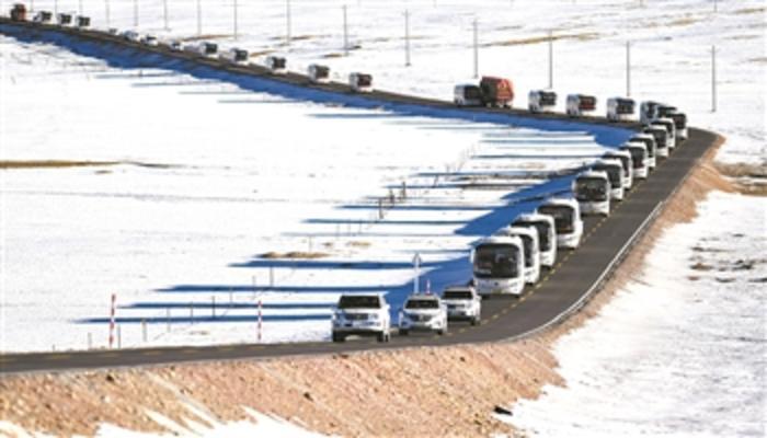 12月23日拍摄的西藏那曲市双湖县牧民的迁徙车队。