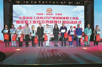据悉,当前江西工会已超额完成向2万名城镇困难职工家庭赠送职工医疗互助保障目标任务。其中,省总投入近200万元,向精准识别的17860户省级以上城镇困难职工家庭赠送大病互助保险计划,计划包含了人身意外伤害、特种重病和住院津贴三项保障内容,最高保障金达5.92万元;各级工会面向在档困难职工共赠送职工医疗互助保障计划3.66万份。