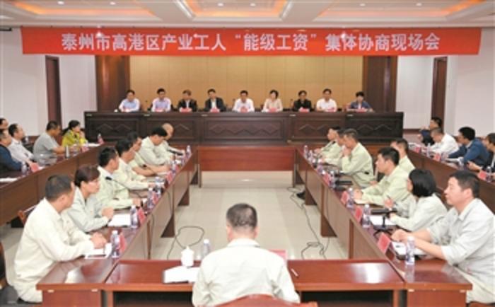 江苏泰州高港区“能级工资”协商现场。(本报资料图片)