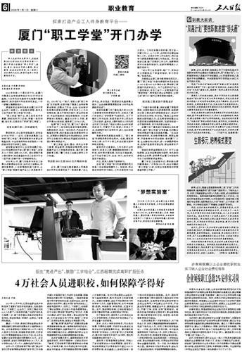 “‘职工学堂’盘活、整合、依托全市职工教育、职业教育、技能培训等资源,加快构建产业工人技能形成体系,提升职工素质教育工程。”厦门市总工会副主席刘义平介绍道。