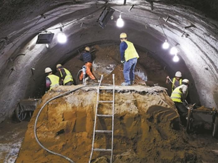 1月1日,中铁七局北京地铁12号线09标工人在安华桥下30米处进行隧道掘进施工。王勤 摄
