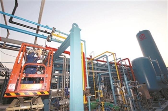1月1日,2022年北京冬奥会氢气“新能源”保供项目现场,燕山石化化学品部厂区内施工人员正在紧张施工。