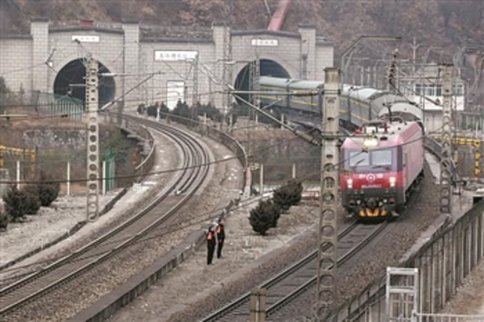 1月1日,西安铁路公安局镇安所民警郑世安带领新民警李新星,在西康铁路秦岭特长隧道外守护新年第一趟旅客列车通过。