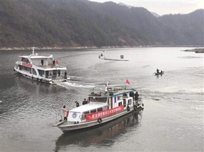 1月1日,皖浙跨省渔业联合执法行动在歙县深渡港码头举行。当天,新安江歙县段开始全面禁捕。潘成 摄