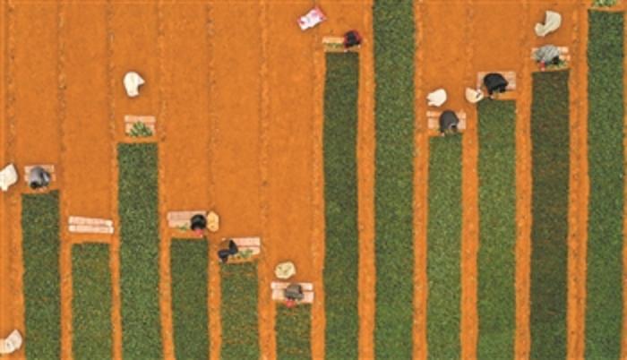 1月1日,在贵州省铜仁市玉屏侗族自治县朱家场镇詹家坳村,村民们正在茶叶苗圃基地扦插茶苗。胡攀学 摄