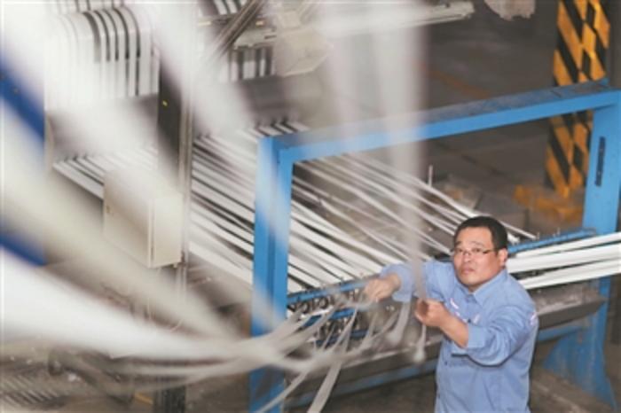 1月1日,天津石化化工部纺丝车间,当班职工正在对生产的短丝质量进行检查。董波 摄