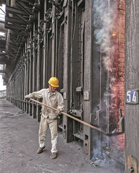 1月1日,新钢集团公司焦化厂炼焦工人默默坚守在一线岗位,在1000多摄氏度高温下“与火共舞”。龚小华 摄