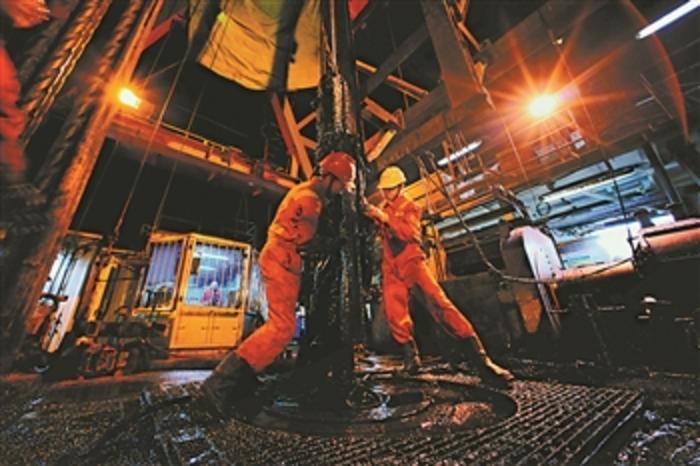 1月1日凌晨,涠洲作业公司涠洲12-2油田(中国海油有限湛江分公司)工人正在进行海上平台作业。莫耀星 摄