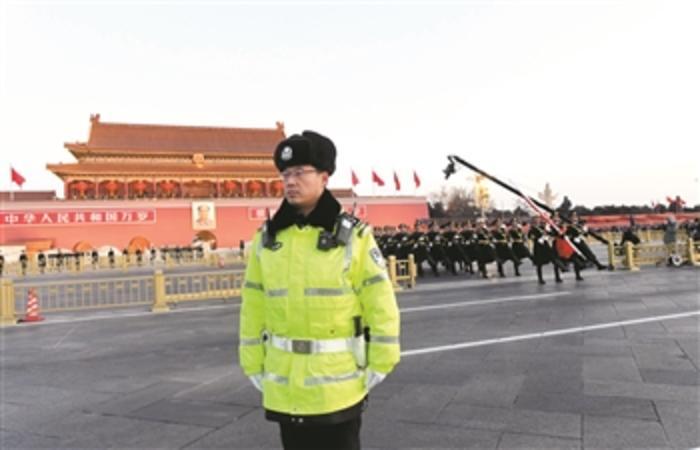 2020年的第一天,首都交管局中心区支队干部民警全员上岗,凌晨3点值守天安门周边,保障2020年第一次升国旗交道畅通,为国旗护卫队保驾护航,保证升国旗仪式圆满完成。