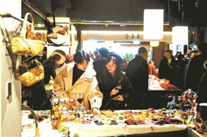 1月5日,年轻人在苏州双塔市集购物。