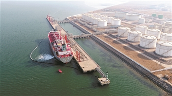 1月2日,在唐山曹妃甸液化码头,“长兴洲”号万吨油轮开始装油,这是冀东油田新年第一船外运原油。2019年,该油田累计外运原油55船次。 杨军 王延武 王翔 摄