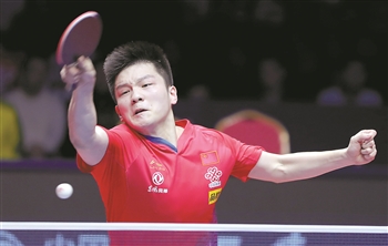 樊振东在比赛中回球。
