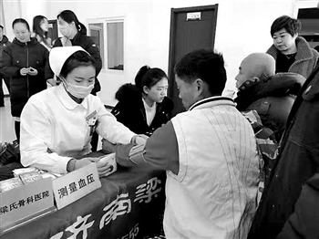 2019年12月27日上午,山东济南市槐荫区段北街道办事处联合两家医院的医务人员,在辖区内济南市最大的劳务市场——槐荫区农民工服务中心,开展为农民工义诊活动,受到了广大农民工的普遍欢迎。