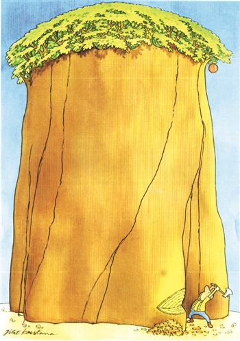 有个果子如何摘到手?树高难以爬上去,找梯子一时没着落。此公此时想到了“移山”的办法伐木。这是艰苦卓绝,还是违规蛮干?【印度尼西亚】吉泰特