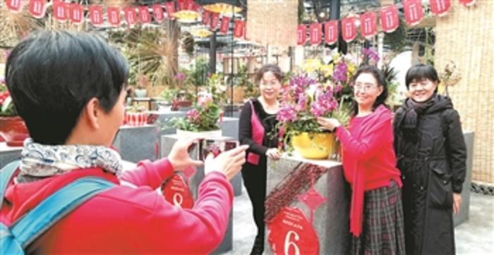图为开幕当天市民在花乡花卉嘉年华艺术中心与鲜花合影。本报记者 杜鑫 摄