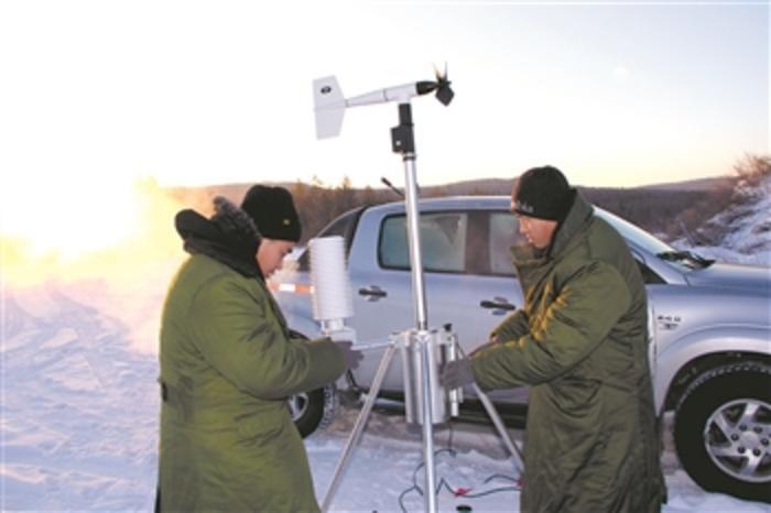 持续极寒天气来袭,气象站点的职工及时排除设备故障。