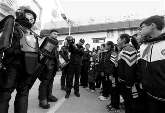 1月10日,河北省邯郸市滏东派出所民警向邯山区阳光实验小学学生进行警务宣传。