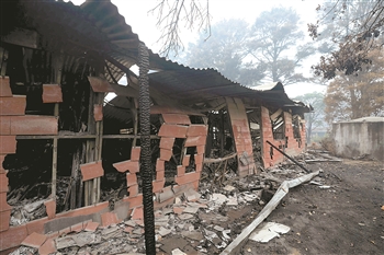 这是1月12日在距澳大利亚首都堪培拉一个多小时车程的温杰洛村拍摄的林火过后的景象。 新华社发(储晨摄)