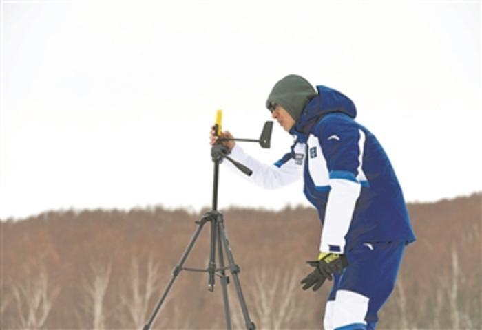 预报员唐凯在冬奥赛事核心区赛道旁实地开展对比观测。 史宏宇 摄