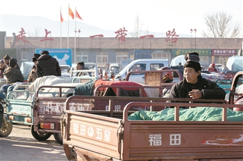 1月10日中午,忙碌的榆树林子蔬菜水果批发市场。