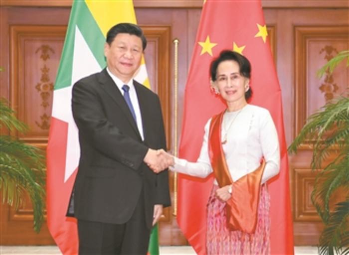 昂山素季再次热烈欢迎习近平主席对缅甸进行国事访问。她表示,缅方高度珍视缅中友谊,希望继续做中国的好朋友。习近平主席这次访问具有里程碑意义,成果丰硕,将极大深化缅中胞波情谊,促进两国务实合作。缅方愿积极推进缅中经济走廊建设,全力落实皎漂项目,加快推进交通、能源、产能、人文、边境、地方等领域合作。缅方愿同中方携手前行,共同构建缅中命运共同体,更好造福两国人民。