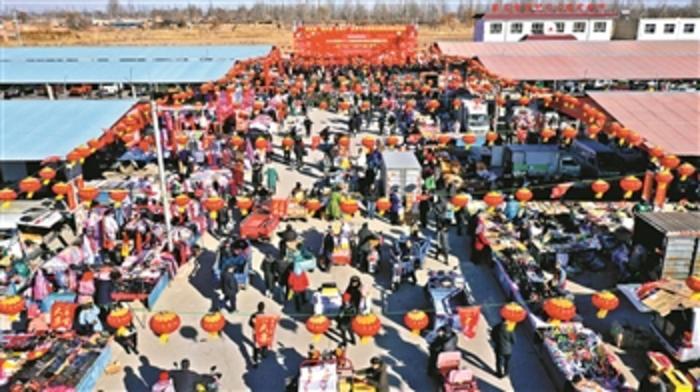 春节临近,宁夏平罗县姚伏镇集市上人头攒动、热闹非凡。丰富的传统特色年货、农民自编自演的文化演出,每天吸引邻近乡镇近万名群众前来赶大集、办年货,感受浓浓的年味。
