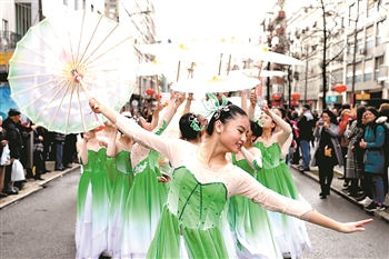 图③:1月18日,在葡萄牙里斯本,演员在春节巡游上表演。当地时间18日上午,2020年葡萄牙“欢乐春节”活动拉开帷幕。今年是葡萄牙第七次举办“欢乐春节”系列活动。 新华社发(佩德罗·菲乌萨 摄)